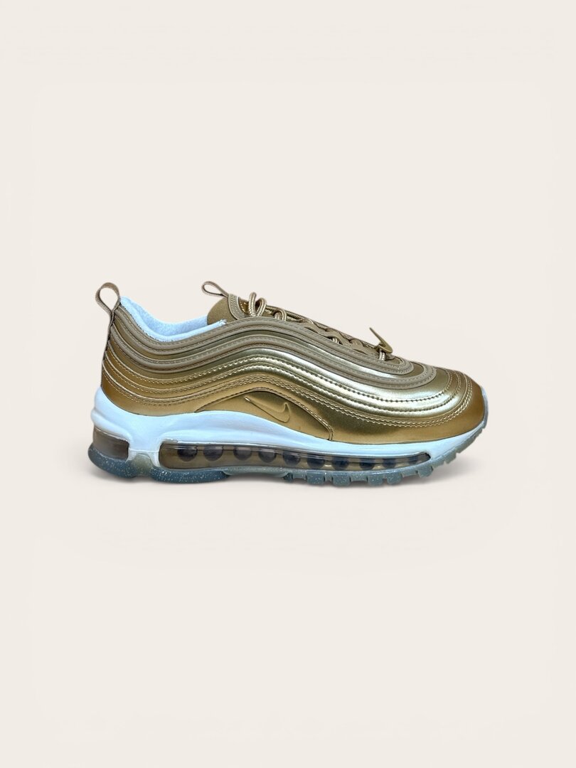 Nike Air Max 97 Gold Staat: Nieuw staat Maat: 36.5 Doos: nieuw in vervangende doos. Alle sneakers worden doubleboxed verzonden